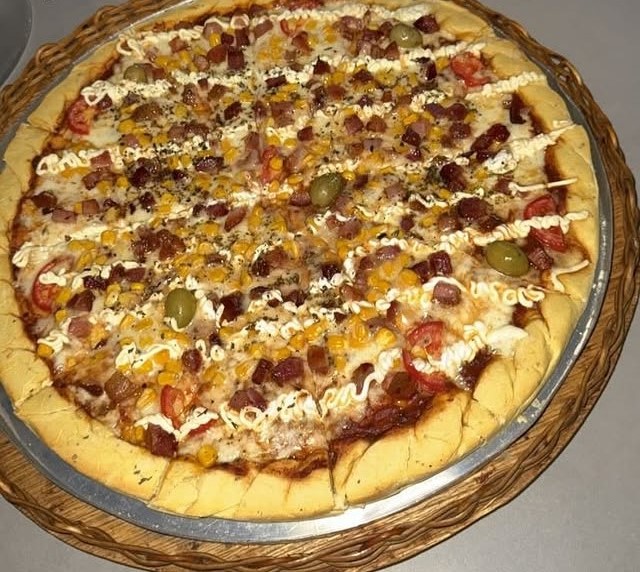 A pizza é fresquinha, saborosa, chegou rapidamente e estava quentinha!