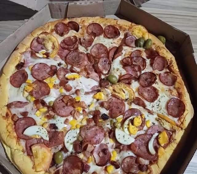 A pizza é fresquinha, saborosa, chegou rapidamente e estava quentinha!